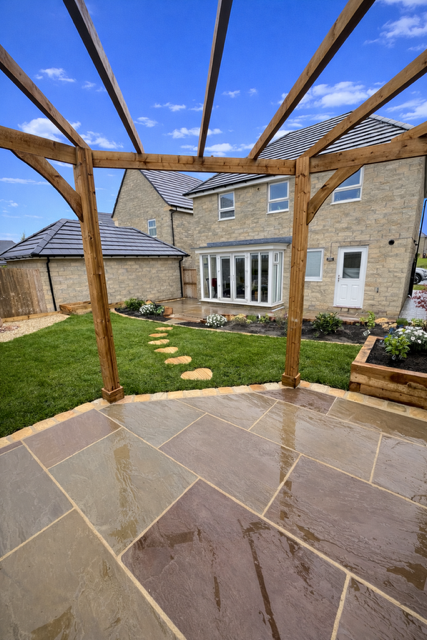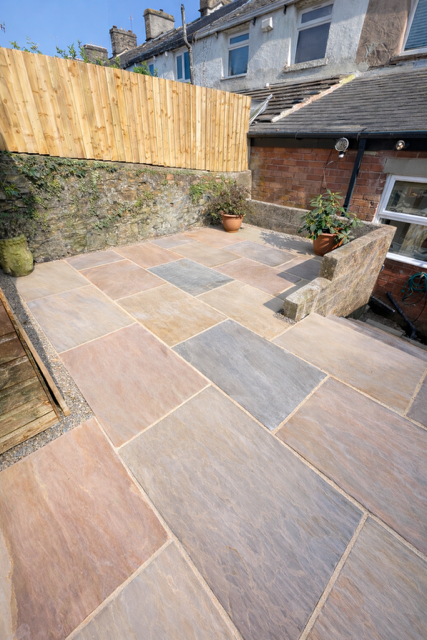 Flawless patios and paths crafted through a robust, high quality laying process and constructed from a range of materials. Choose riven sandstone for a rustic look or smooth sandstone and porcelain for a more contemporary finish.